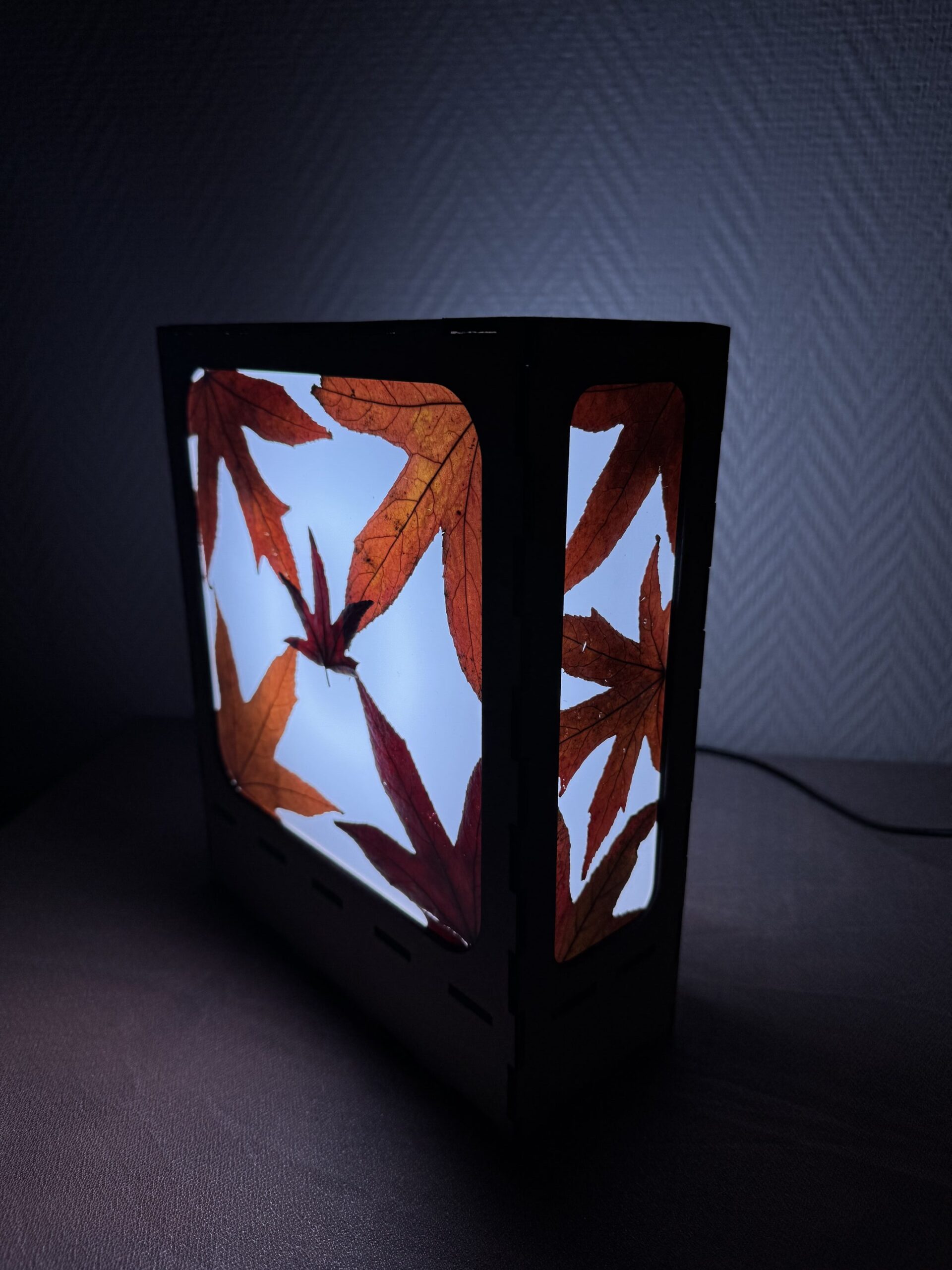 Made with real sweetgum leaves hand-picked in London (Autumn 2025), each lamp preserves their veins, shifting reds, and natural variation. By day it’s botanical art; when lit, it glows warm—quietly dramatic.